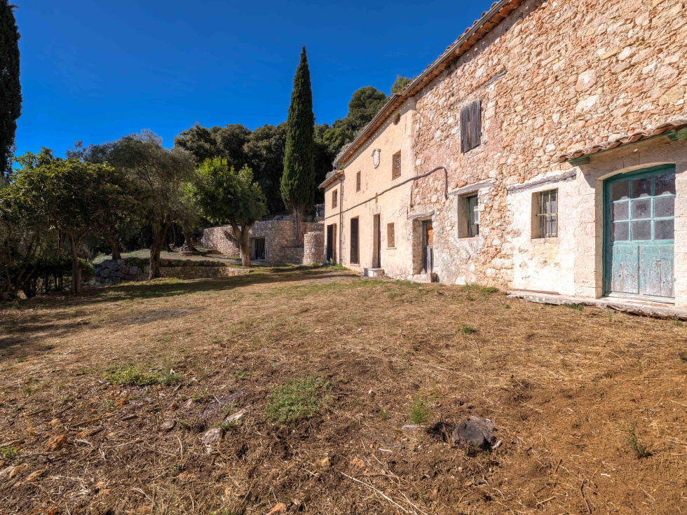 Located in a peaceful, green setting, this charming old farmhouse offers a unique living environment, surrounded by over 16,600 m² of land combining olive groves and wooded areas.